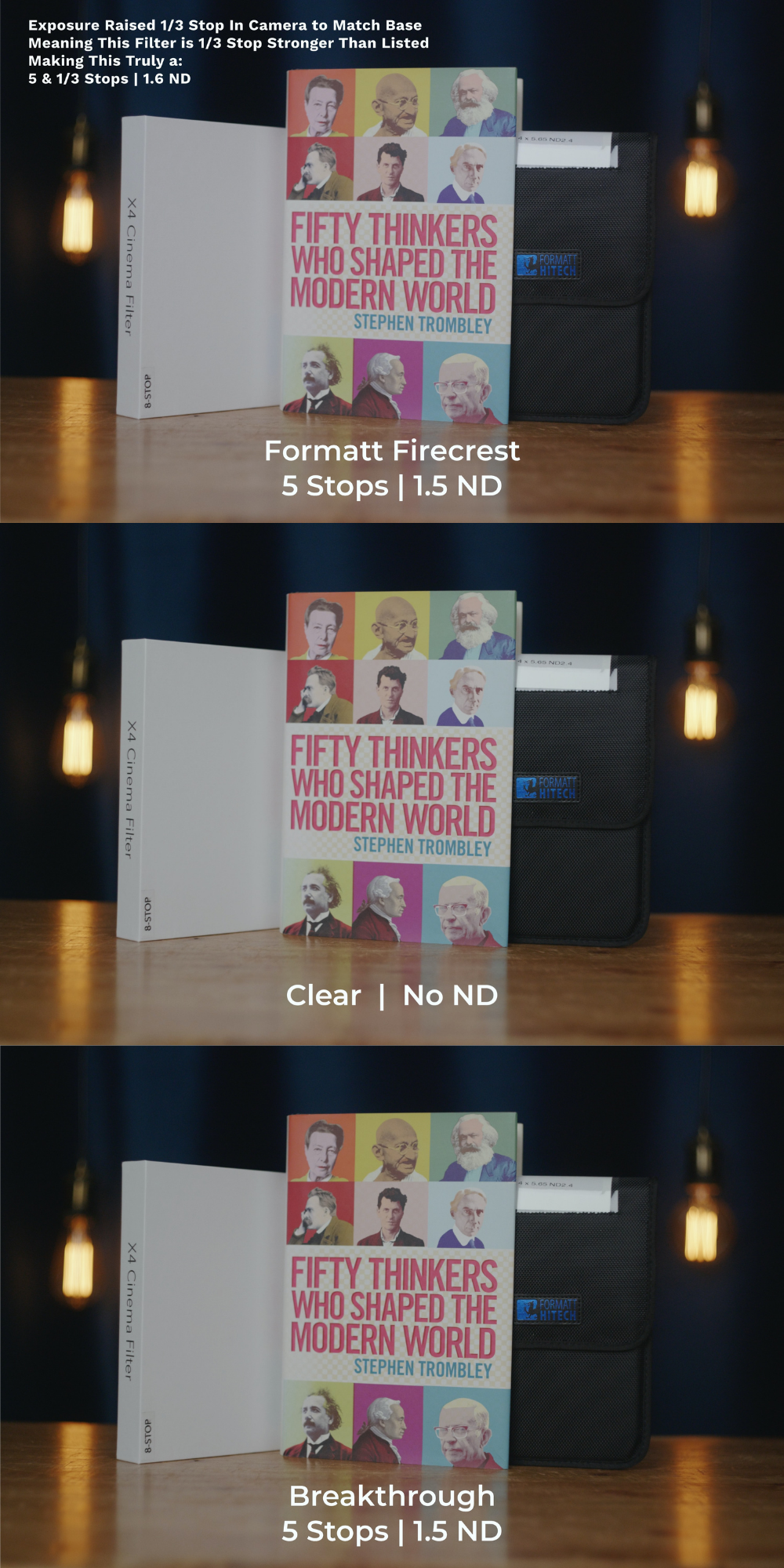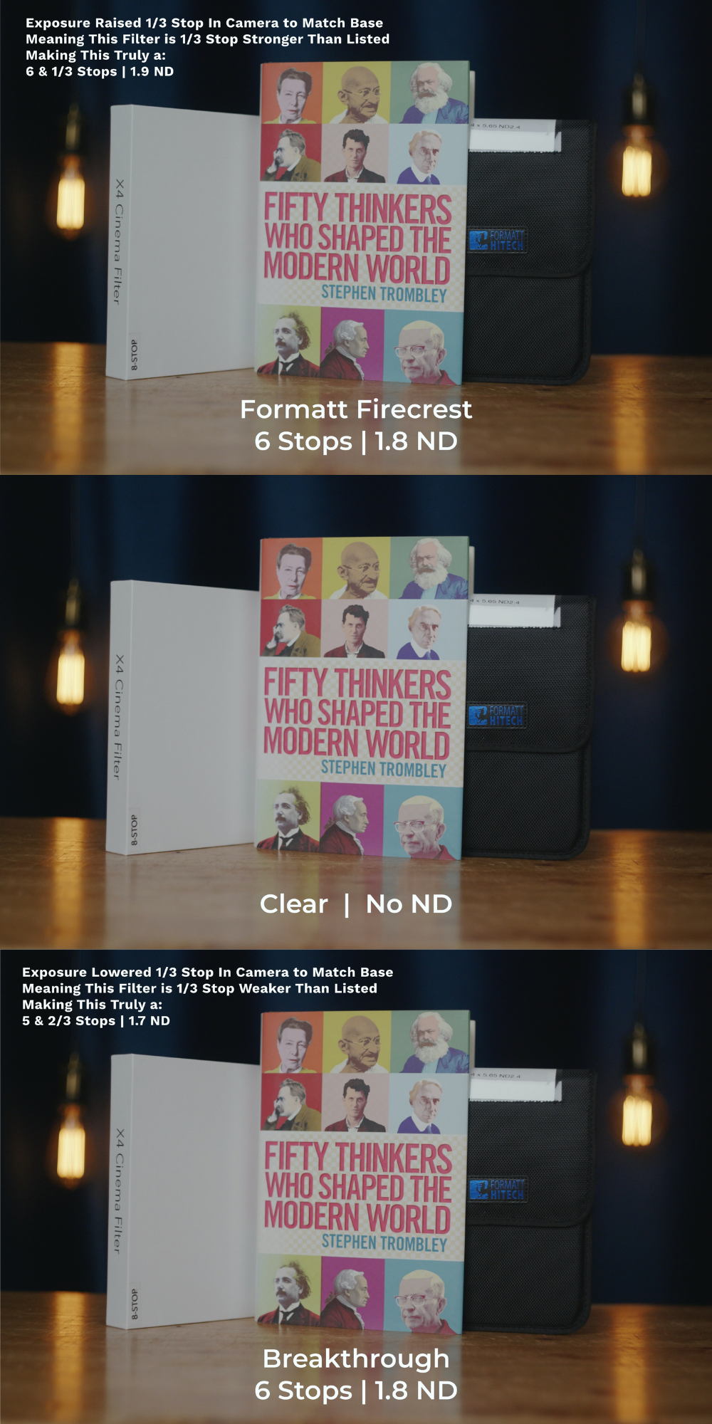 For each new filter pair, I'll re-include the Base with No ND, so that you always have the neutral reference point to observe exposure and tint shifts.